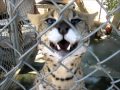 Phoenix is a male African Serval found by California Department of Fish & Game in the City of Temecula back in May 2008. We approximate his age was around 5 years old. With no background to go off of we can only guess that Phoenix was someone's illegal pet that was either set free to fend for himself or accidentally got loose. We immediately took him to the vet to undergo a physical to make sure there was nothing wrong with him other than knowing that he was yet another tragic statistic to the declaw. In making arrangements for Phoenix to get his first reconstructive surgery done we noticed a bulge in one of his shoulders. The x-rays revealed that he had a 6 inch steel rod protruding from his leg into his shoulder created massive amounts of scar tissue. We immediately had the rod removed and he has healed wonderfully. He has made a terrific addition to our family here at Forever Wild and we look forward to giving him the opportunity to have the rest of surgeries so that he can live a very happy and long life.